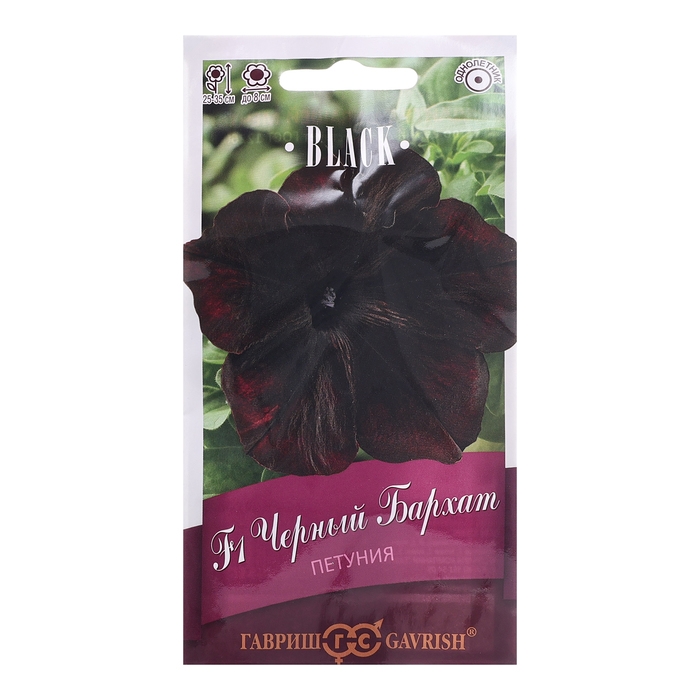 Фантастический гибрид, поражающий воображение! Практически черные бархатистые цветки, диаметром 8 см, плотно покрывают сильноветвистый кустик, высотой 25-35 см и диаметром 25-30 см. Гибрид идеален для выращивания в корзинах, контейнерах, рабатках, бордюрах и на клумбах. Великолепно подойдет для профессионального выращивания на продажу. Посев проводят с февраля по март поверхностно, под стекло, после появления всходов стекло убирают. При зимнем посеве всходам необходима подсветка. Всходы появляются через 7-12 дней. На постоянное место высаживают, когда минует опасность заморозков. Цветет с конца мая весь сезон. Светолюбива и достаточно засухоустойчива. Предпочитает легкие, плодородные, хорошо дренированные почвы.