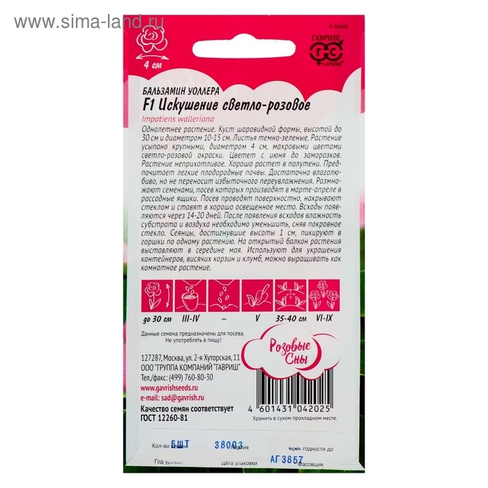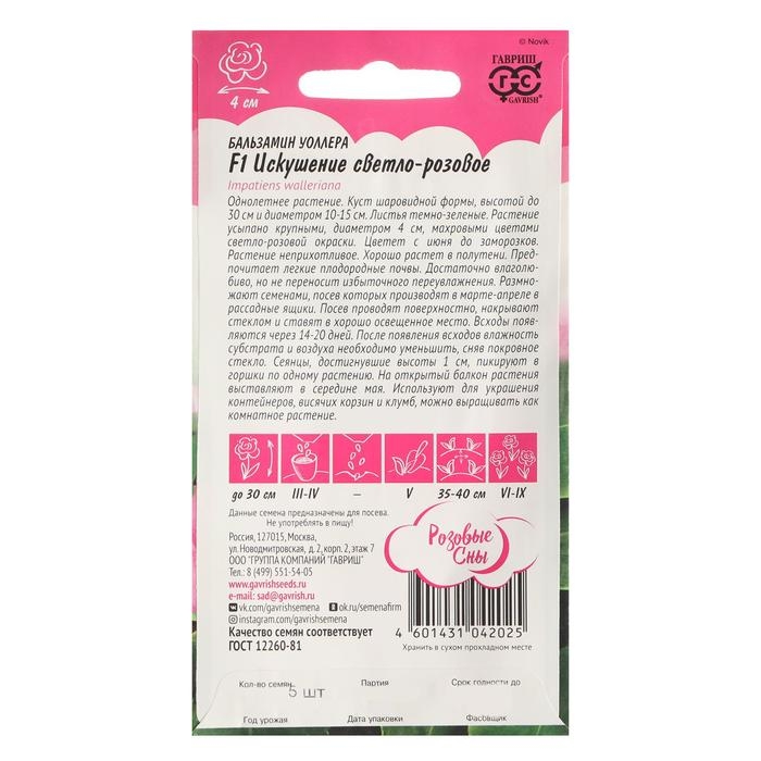 Семена цветов Бальзамин Уоллера "Искушение светло-розовое" F1, О, 4 шт.
