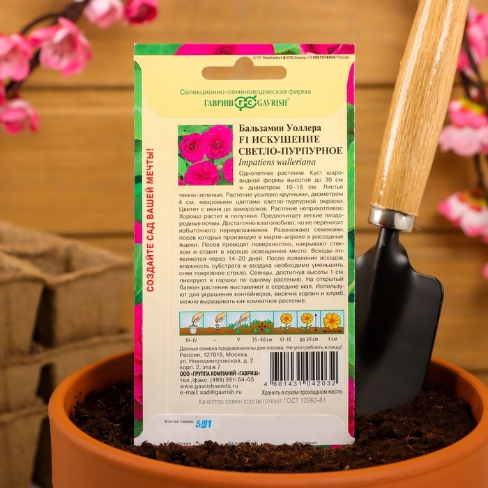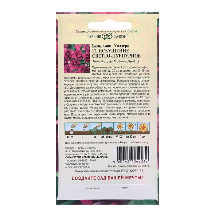Семена цветов Бальзамин Уоллера "Искушение светло-пурпурное" F1, О, 4 шт.
