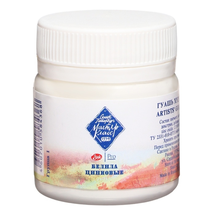 Гуашь художественная в банке 40 мл, ЗХК "Мастер класс", белила цинковые (1723100)
