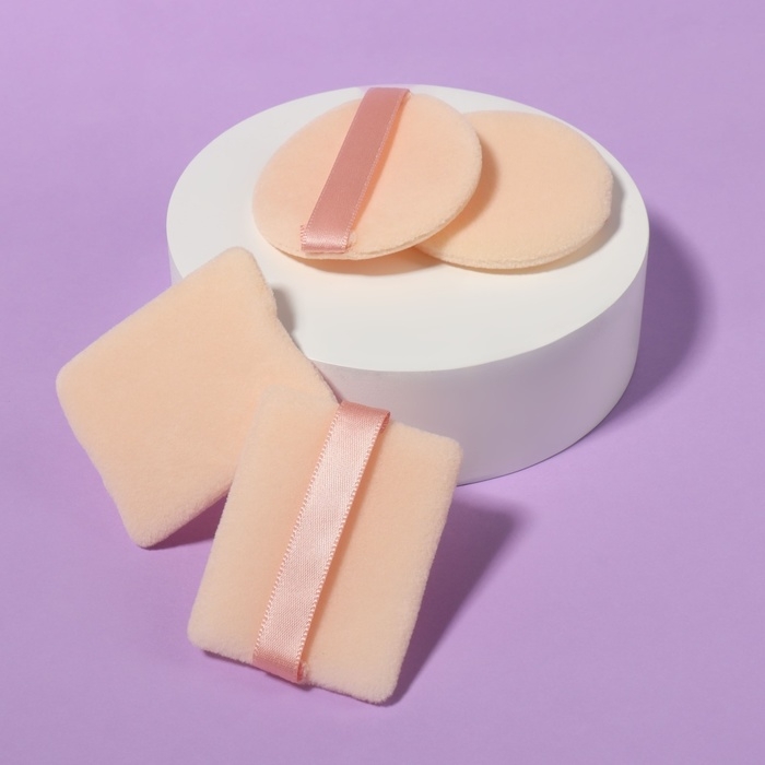 Пуховки для макияжа, набор - 4 шт, d = 5 см / 5,5 × 4,4 см, с держателем, цвет бежевый