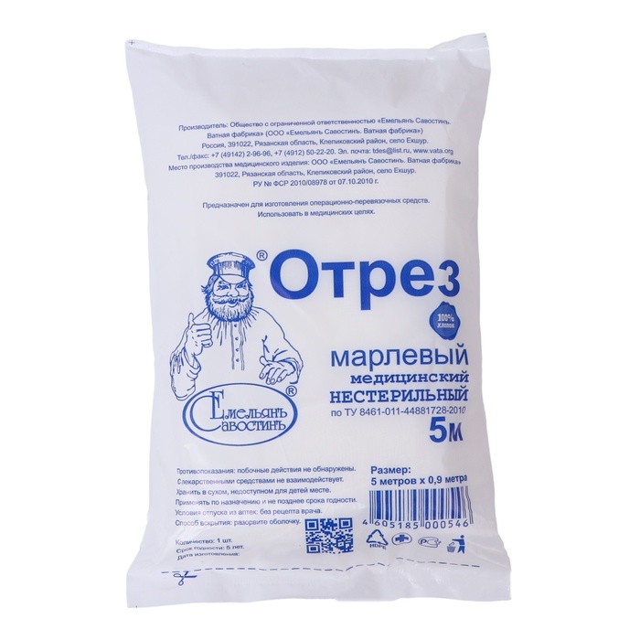Отрез марлевый медицинский "Емельянъ Савостинъ", плотность 32г/кв.м, 0,9 х 2 м