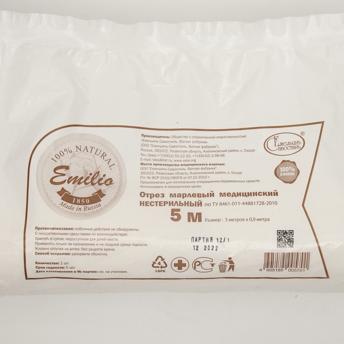 Марля медицинская "Емельянъ Савостинъ", плотность 32 г/кв.м, 0.9х5 м