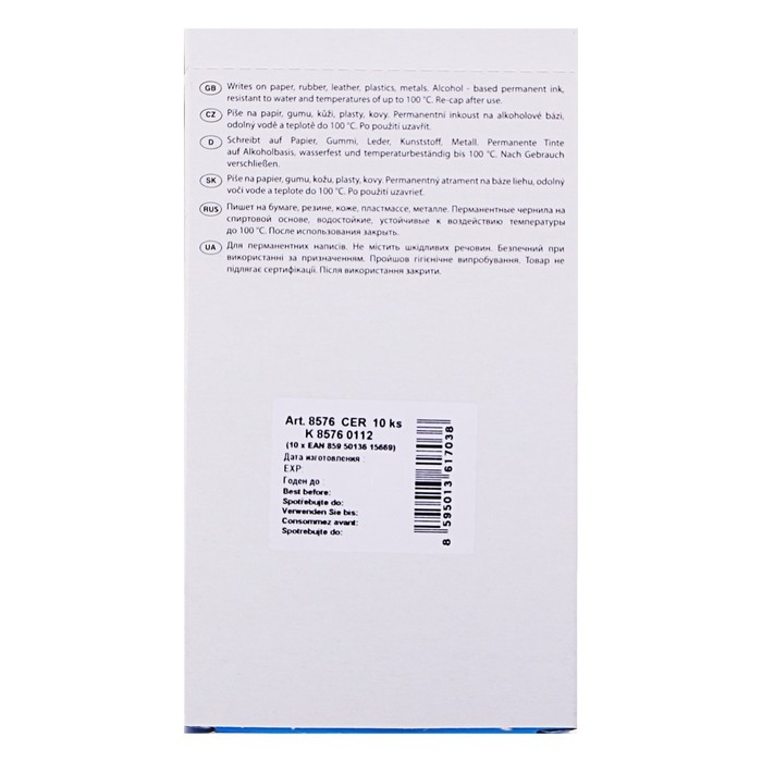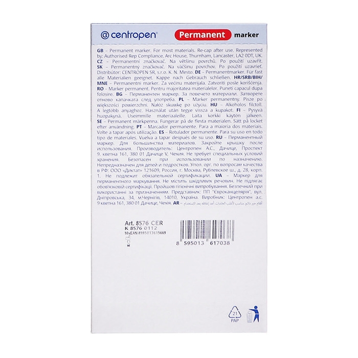 Centropen 8576 — это перманентый маркер со скошенным наконечником, который предназначен для письма на любых поверхностях.
