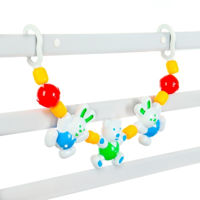 Погремушка-подвеска крепится на кроватку или коляску новорождённого. Игрушка успокоит и развеселит малыша дома и на прогулке. Кроха будет рассматривать яркий предмет и тянуться к привлекательным фигуркам.