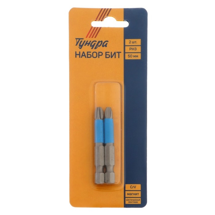 Биты ТУНДРА, намагниченные, сталь CrV, PH3 х 50 мм, 2 шт.