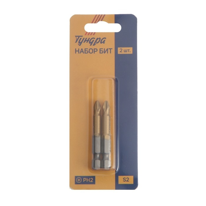 Биты ТУНДРА, намагниченные, сталь S2, 58-60 HRC, TiN, PH2 х 50 мм, 2 шт.