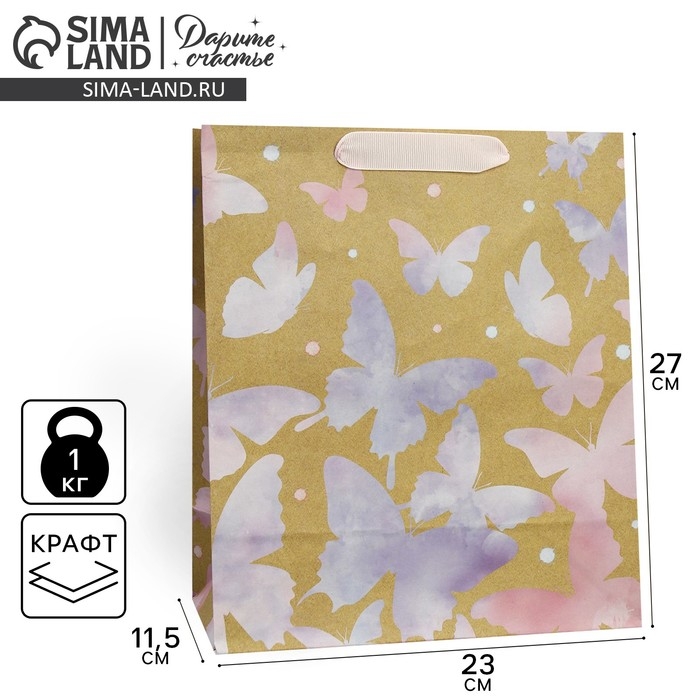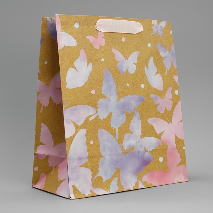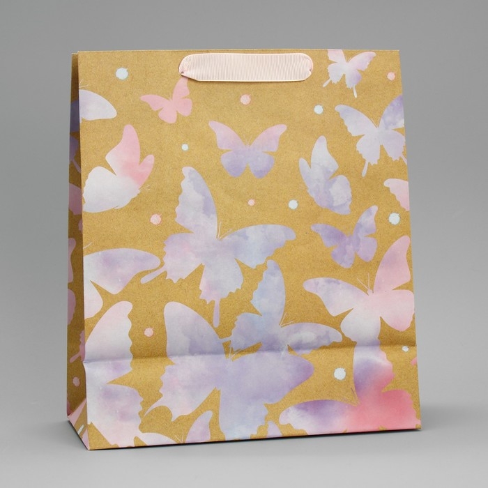 Пакет подарочный крафтовый вертикальный, упаковка, «Акварельный», ML 23 х 27 х 11,5 см