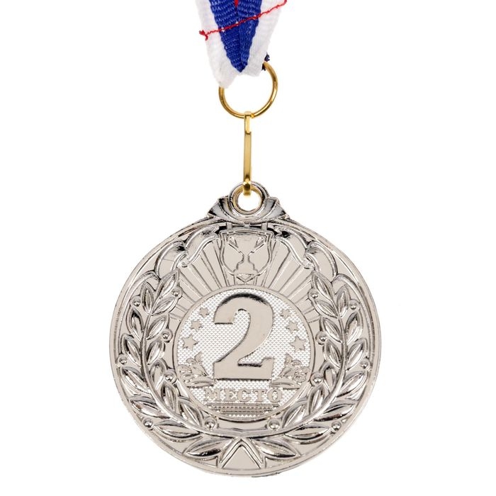 Медаль призовая 060, d= 5 см. 2 место. Цвет серебро. С лентой