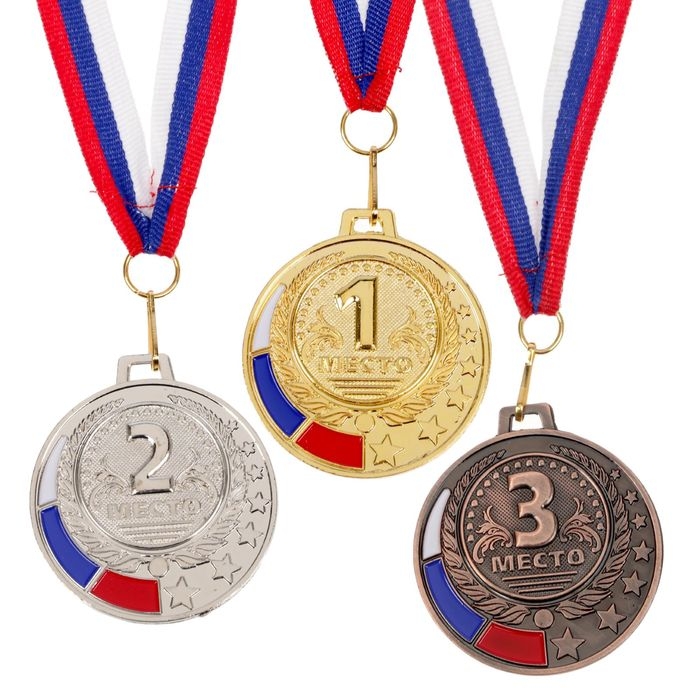 Медаль призовая 013, d= 5 см. 3 место, триколор. Цвет бронза. С лентой