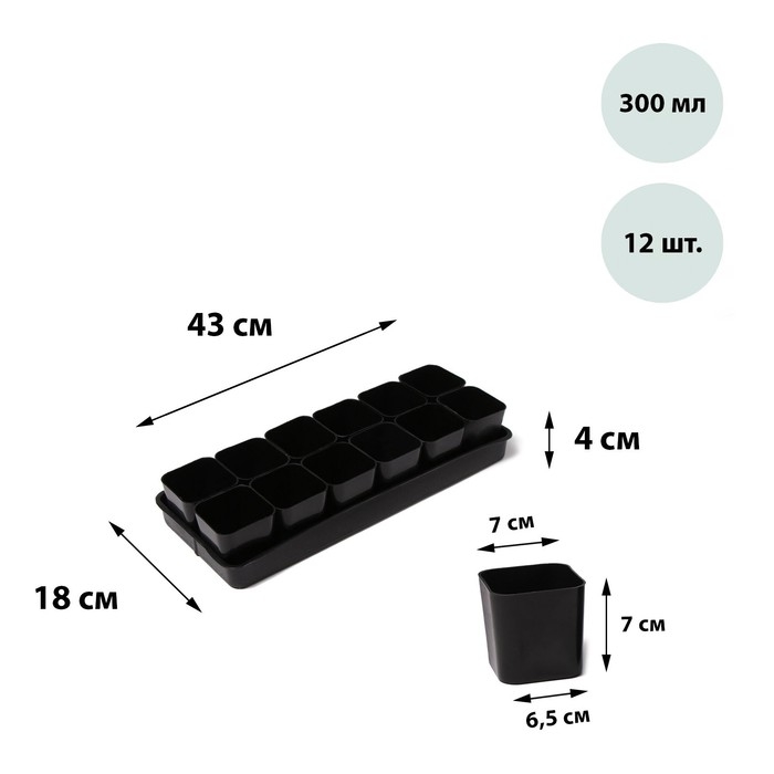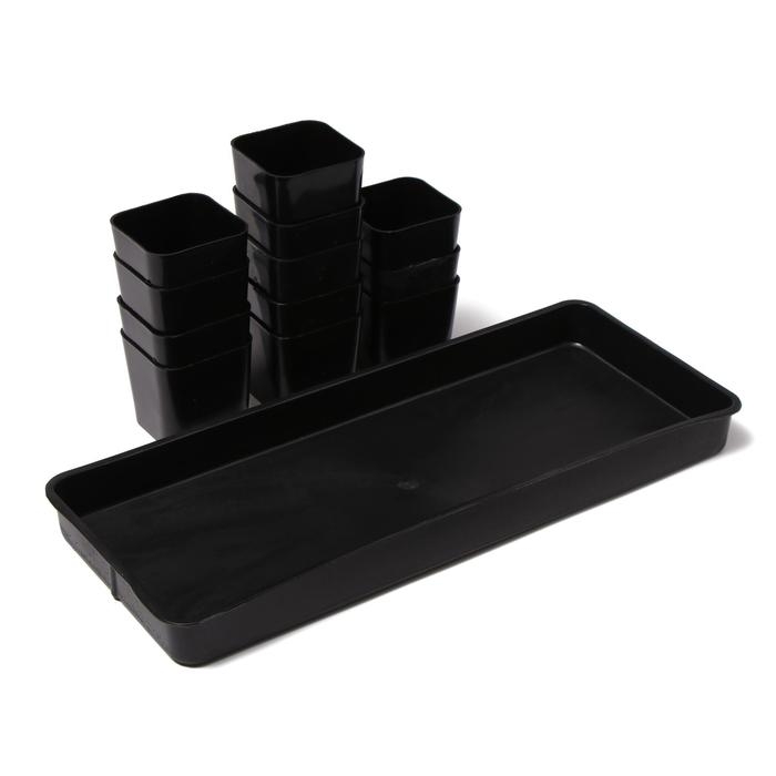 Набор для рассады: стаканы по 1 л (10 шт.), поддон 61 × 23 см, чёрный