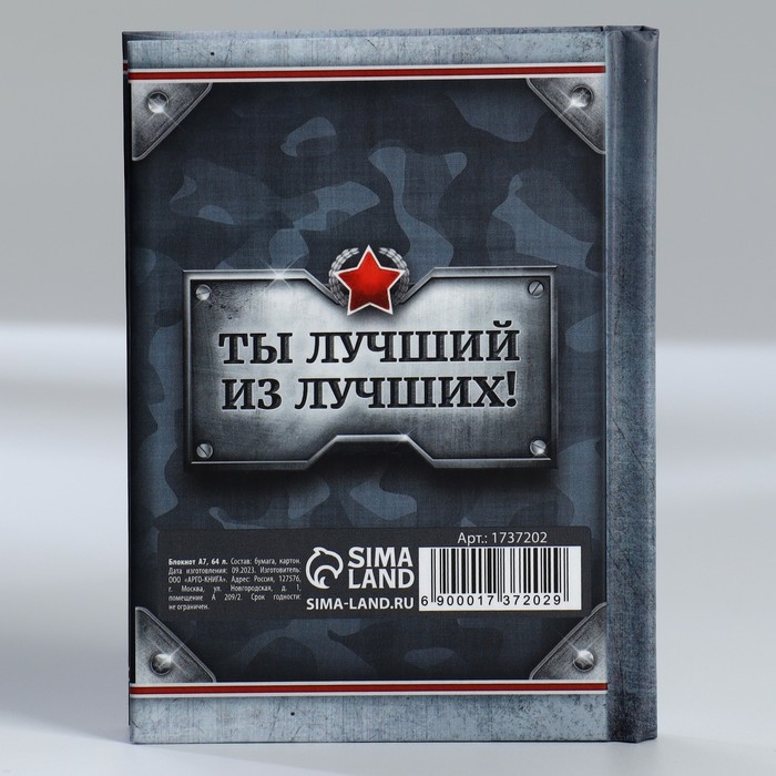 Блокнот А7, 64 листа в твердой обложке «С 23 февраля»