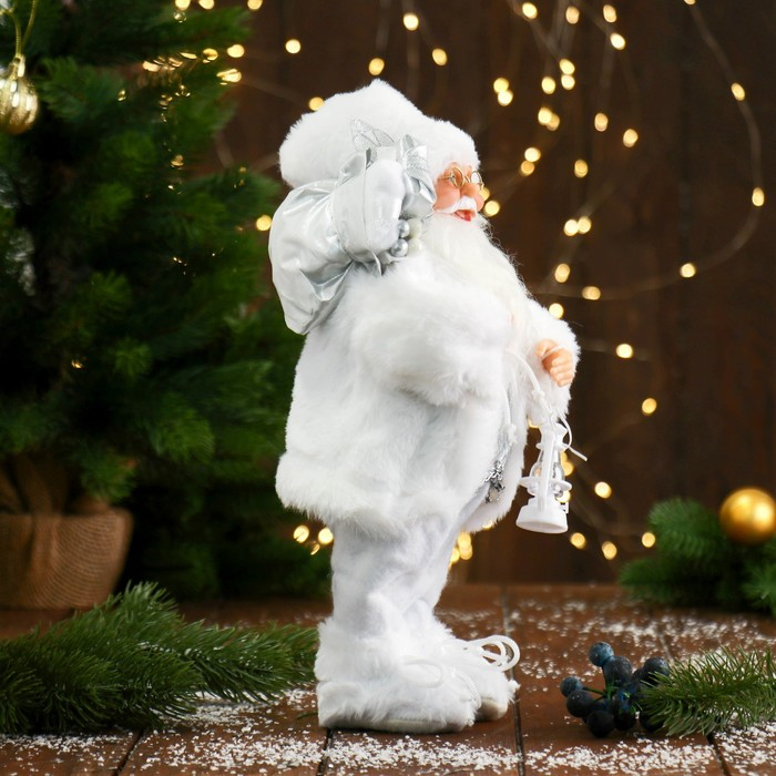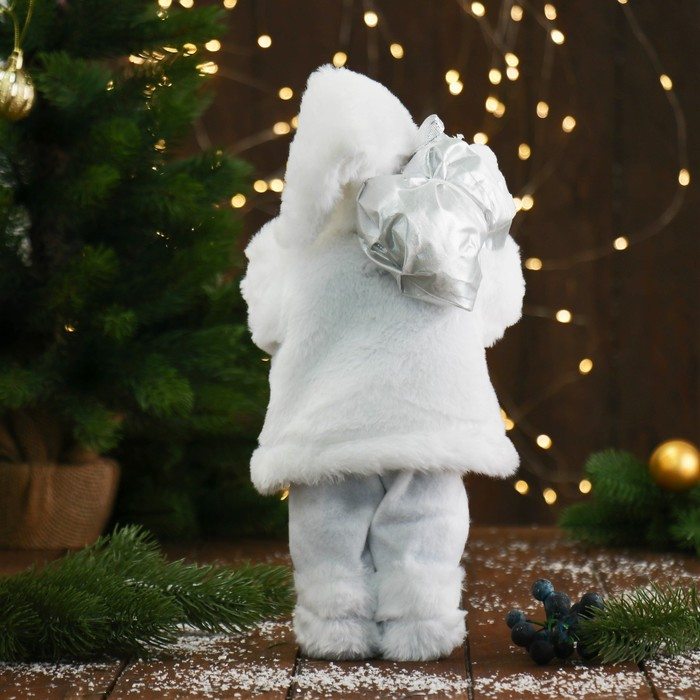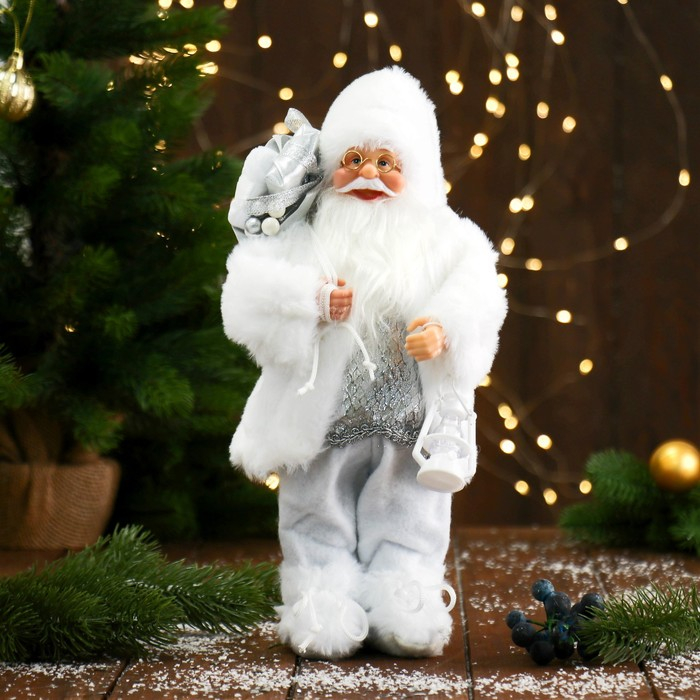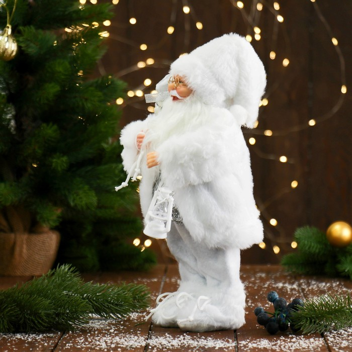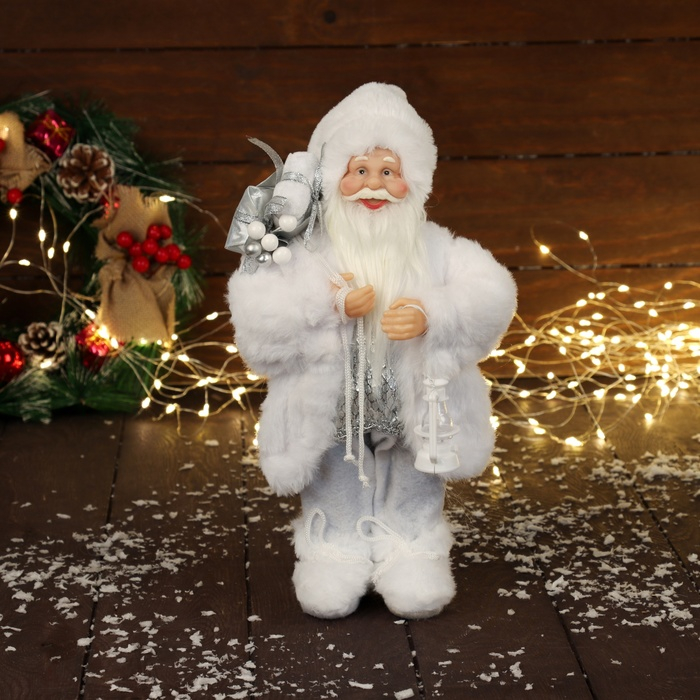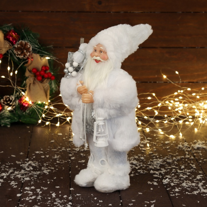 Дед Мороз "В белой шубке, с фонариком и подарками" Микс 30 см