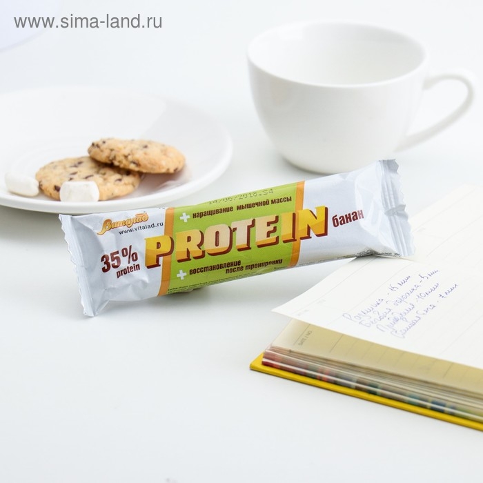 Популярный у спортсменов батончик «Протеиновый с бананом» из серии «Фитнес» – самый легкий способ пополнить организм белком. Им можно полакомиться до тренировки, после нее или в перерыве между двумя этапами. Его основу составляют овсяные хлопья, наполняющие организм медленными углеводами. Карамельная патока придает десерту сладкий вкус. Корпус покрывает тонкий слой шоколадной глазури с нежным запахом ванили.