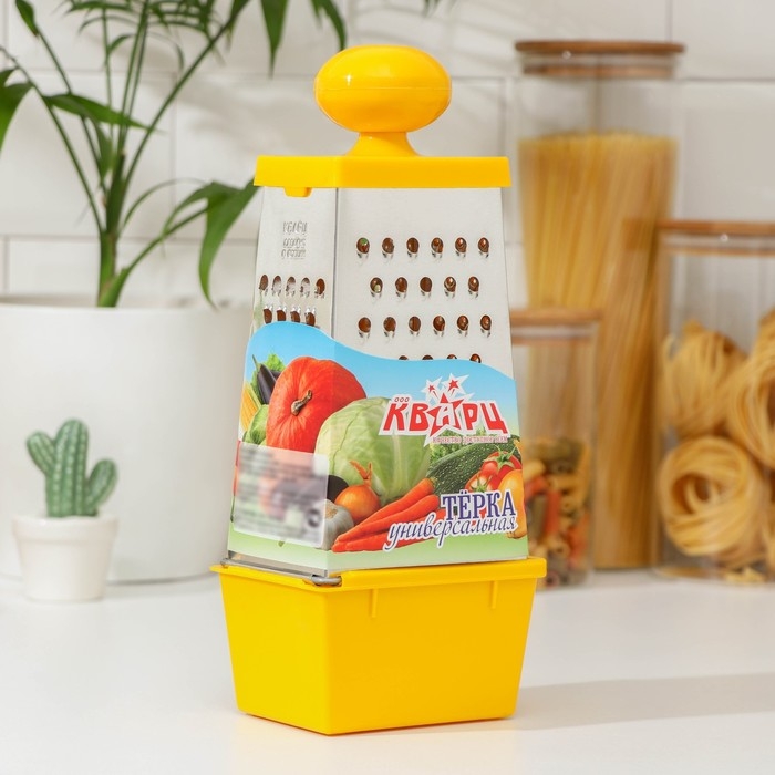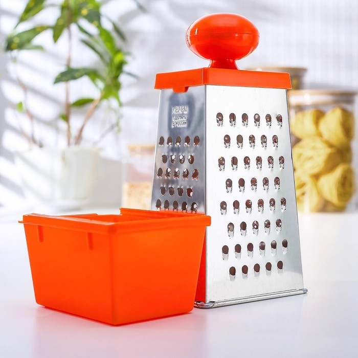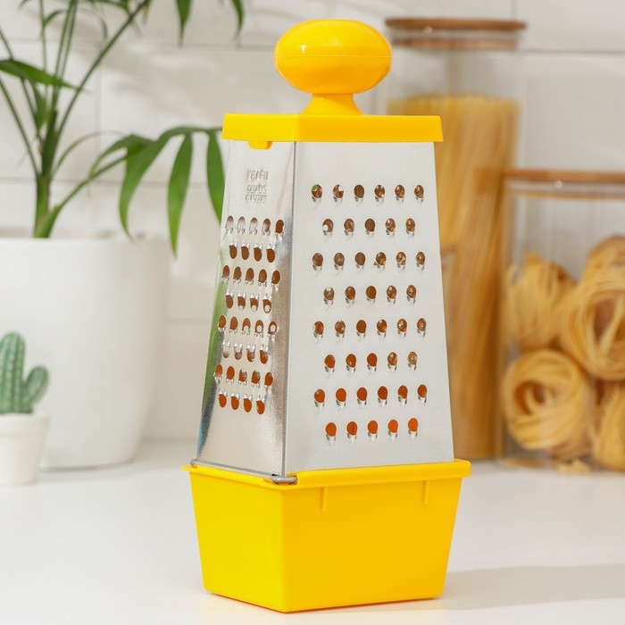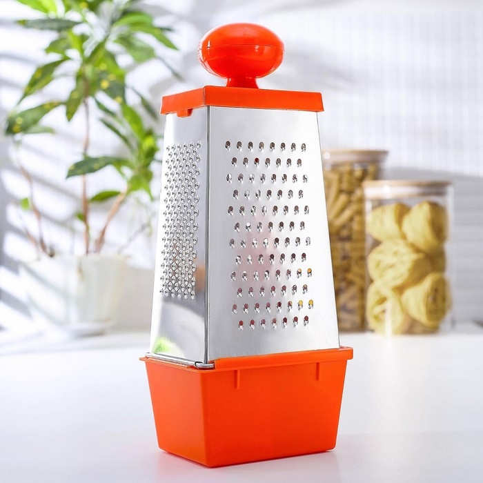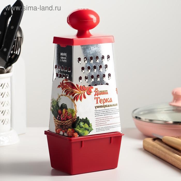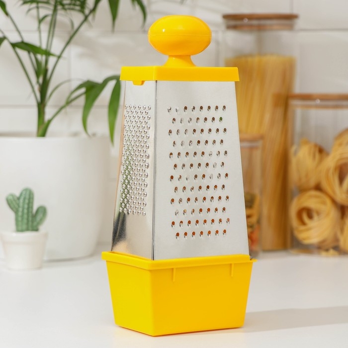 Тёрка Доляна «Комфорт», 4 грани, с контейнером 450 мл, ручка круглая, 28×12×9 см, цвет МИКС