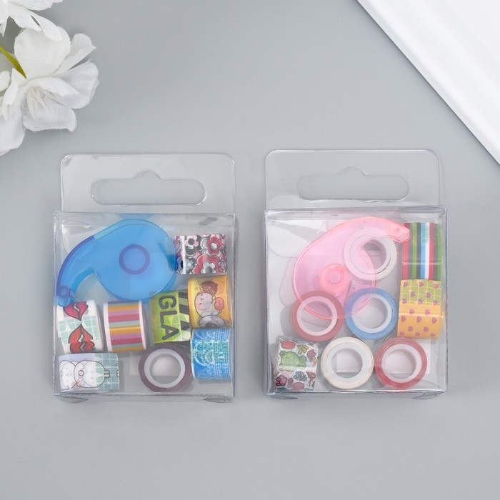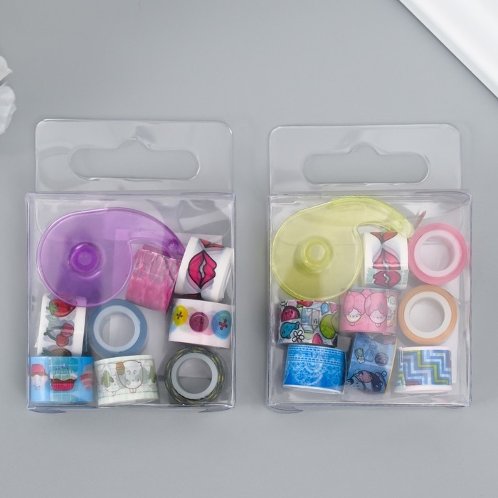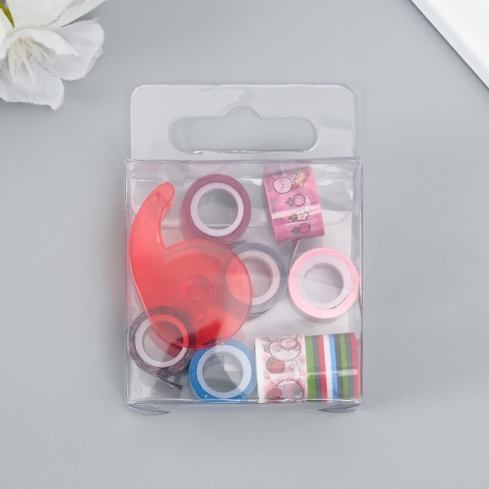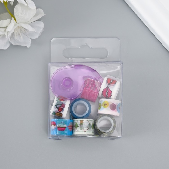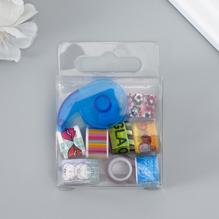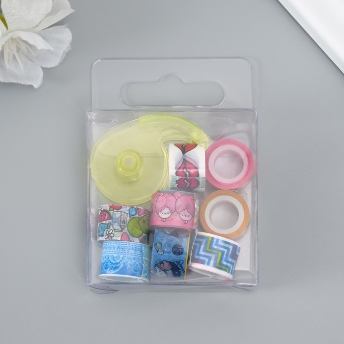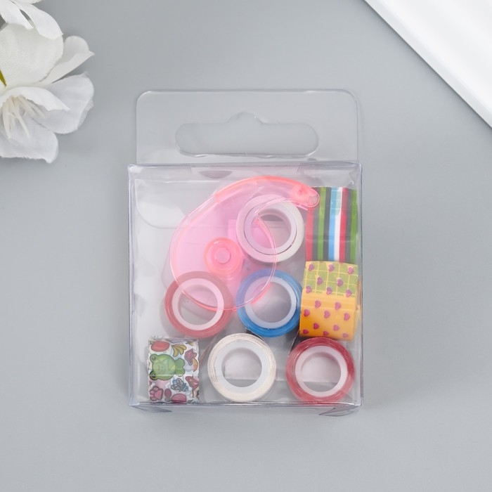 Клейкая лента декоративная с держателем (набор 8 шт) ширина 1,2 см длина 2,8 метра МИКС