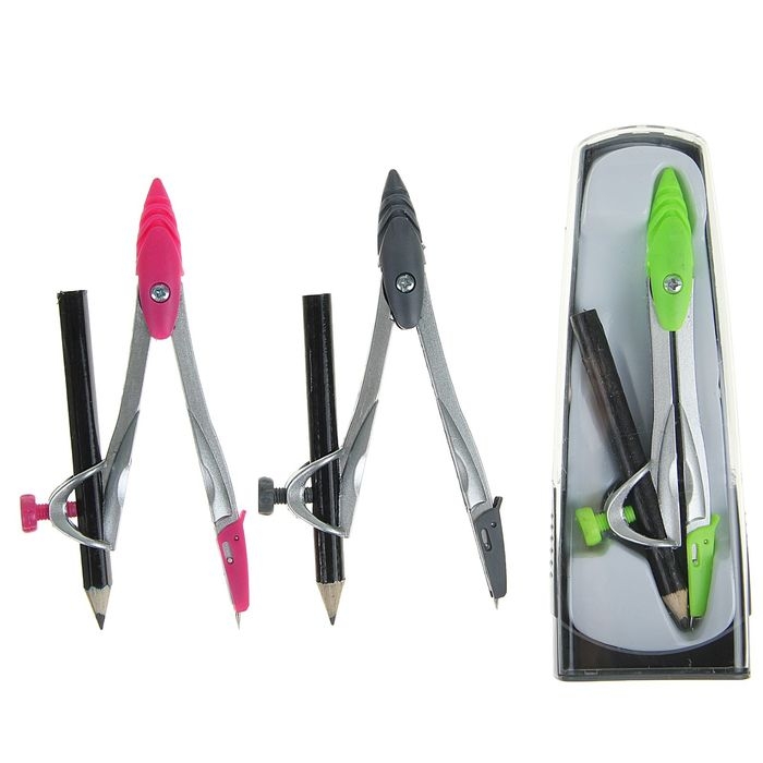 Циркуль металлический 115 мм, с чернографитным карандашом в пластиковом пенале, МИКС