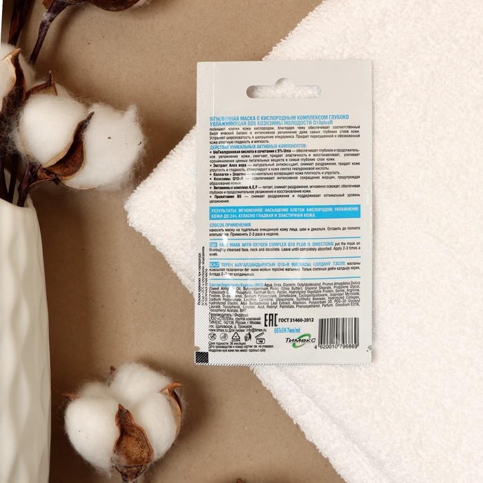 Мгновенная маска для лица насыщает клетки кислородом, обеспечивает биологический баланс и интенсивно увлажняет. Косметическое средство устраняет шероховатости и шелушение эпидермиса, придаёт обезвоженной коже гладкость и мягкость.