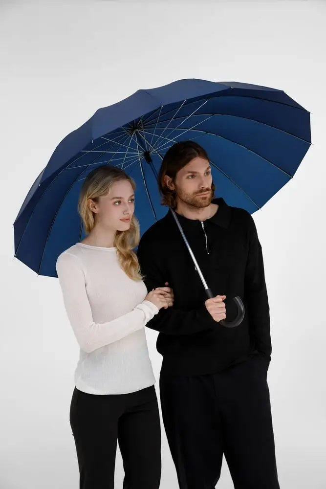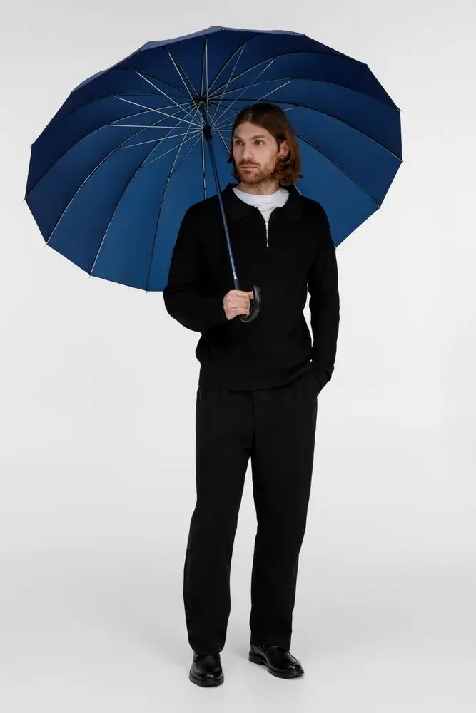 Элегантный зонт-трость Hit Golf привлекает внимание своим оригинальным дизайном с большим количеством спиц. А благодаря размерам купола укрыться от дождя под этим зонтом можно даже вдвоем!