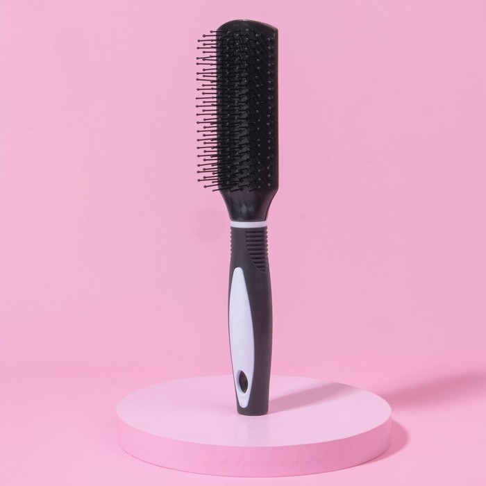 Расчёска массажная, 6,7 × 24 см, цвет чёрный/белый