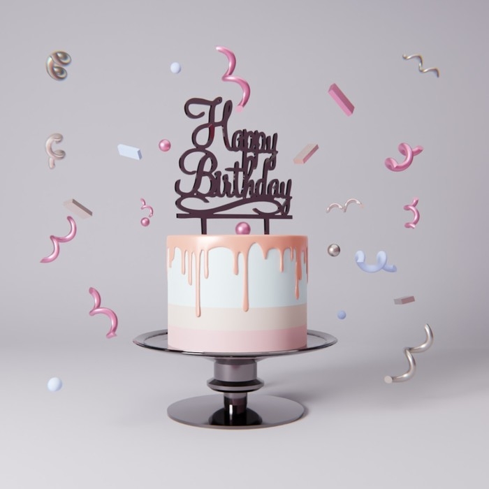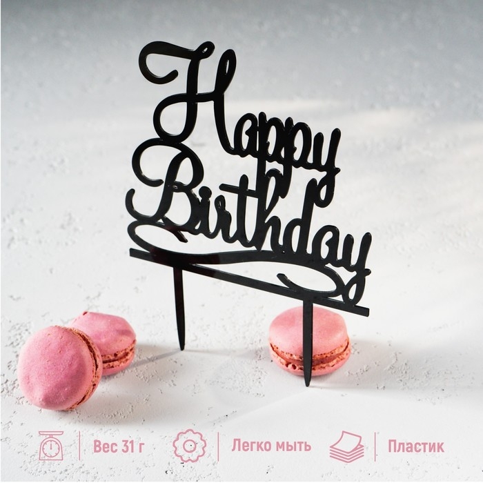 Топпер для торта «С Днём Рождения», 13×17 см, цвет чёрный