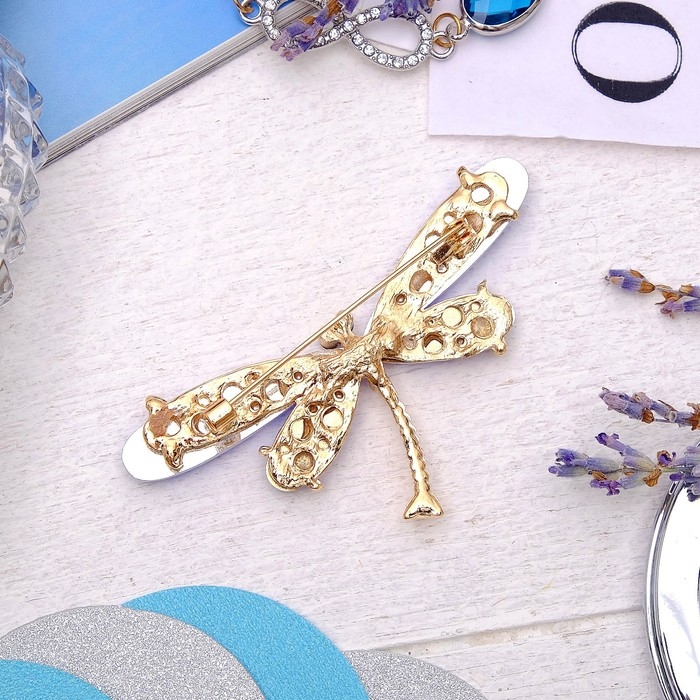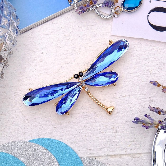 Брошь «Стрекоза», граненые крылья, цвет синий в золоте