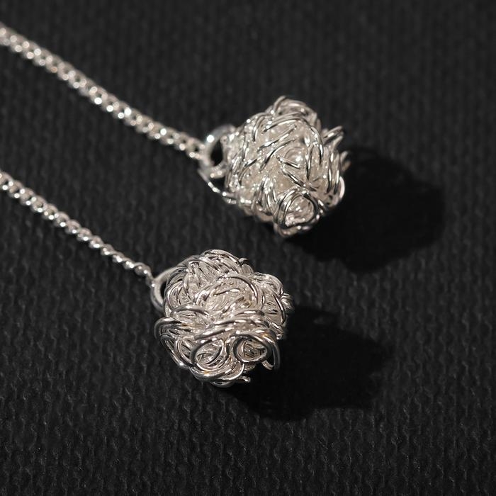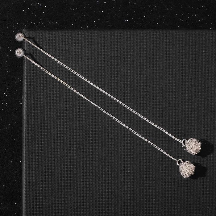 Серьги металл «Цепочки» шарики, цвет серебро