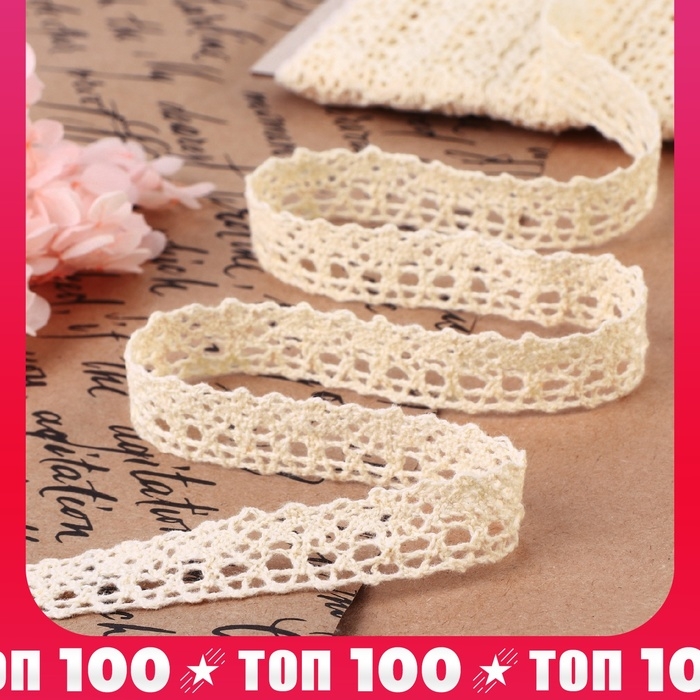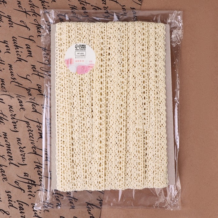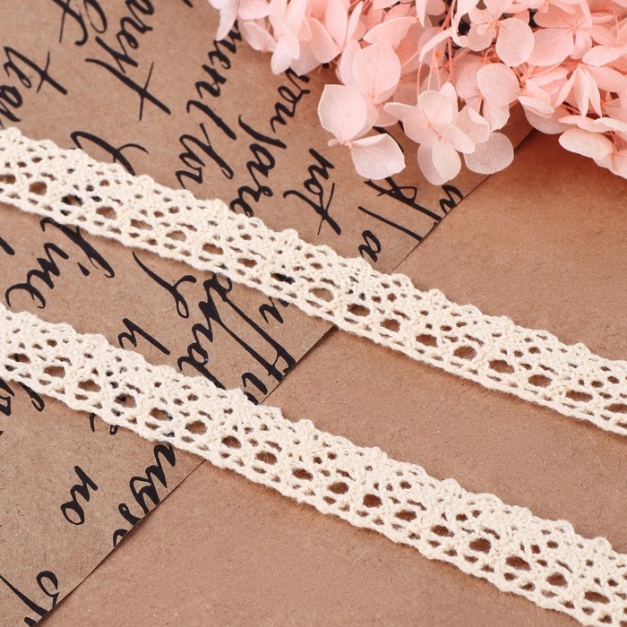 Кружево вязаное, 15 мм × 15 ± 1 м, цвет бежевый