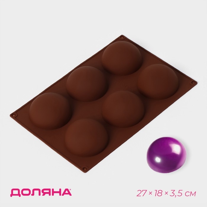 Форма для выпечки Доляна «Фигуры. Полусфера», силикон, 27×18×3,5 см, 6 ячеек (7×7×3,5 см), цвет МИКС
