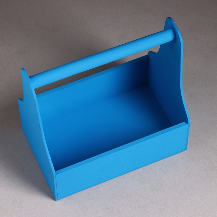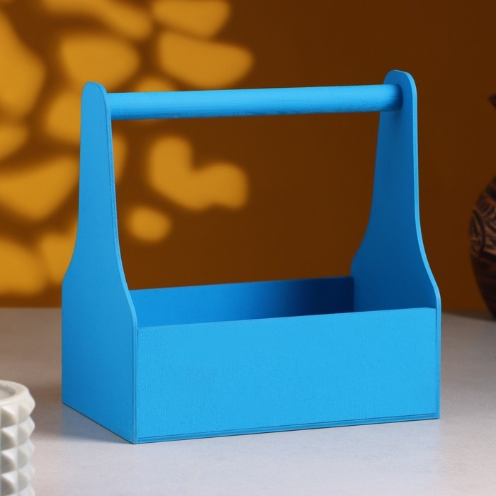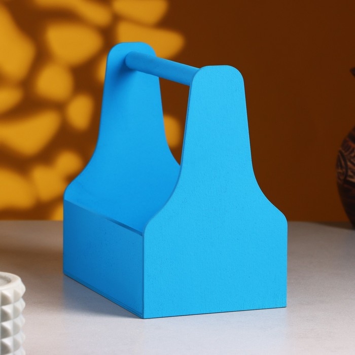 Кашпо деревянное 20×12.5×20 см Стелла Моно, с ручкой, синий Дарим Красиво