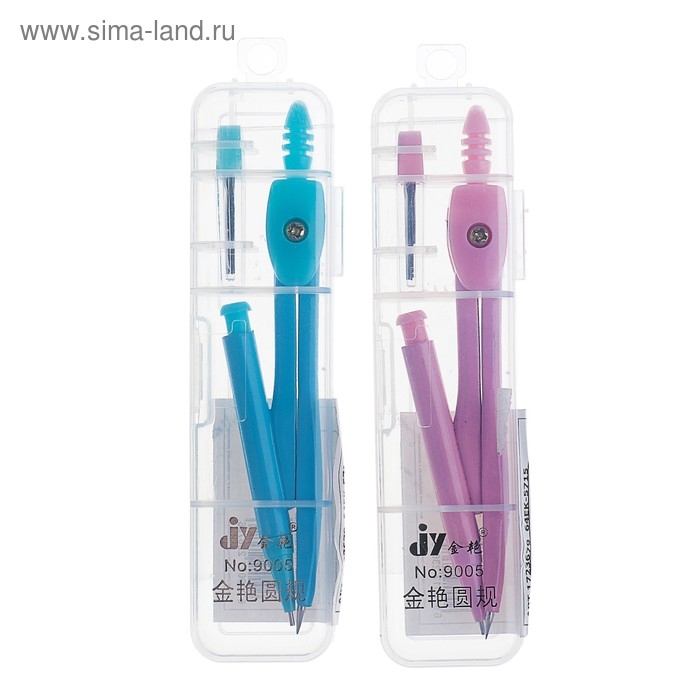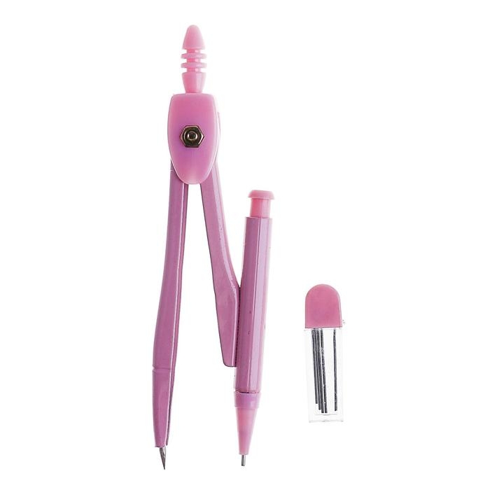Циркуль металлический 120 мм с механическим карандашом, в пластиковом пенале, с грифелями, МИКС