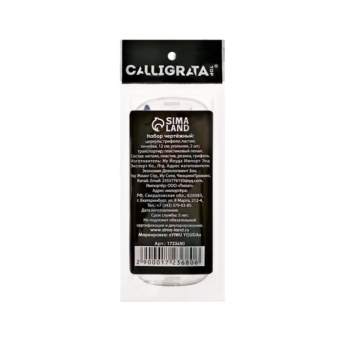 Готовальня Calligrata 4 предмета: циркуль, грифель, удлинитель, рейсфедер, в пластиковом пенале