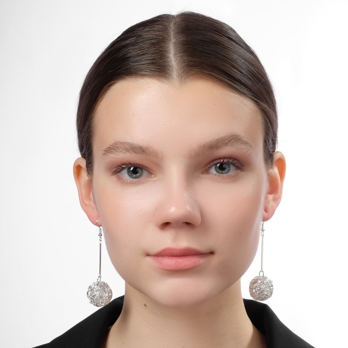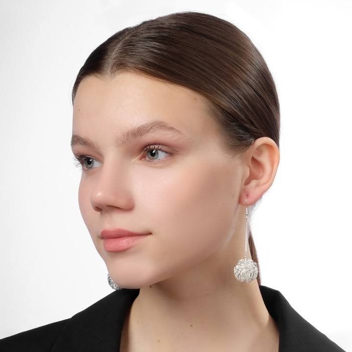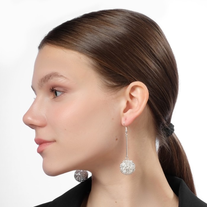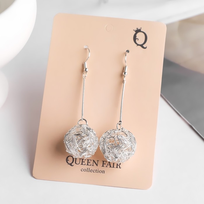 Серьги висячие «Шарик» переплетение, цвет светлое серебро, 6,5 см