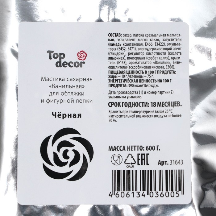 Мастика сахарная ванильная черная, 600 г
