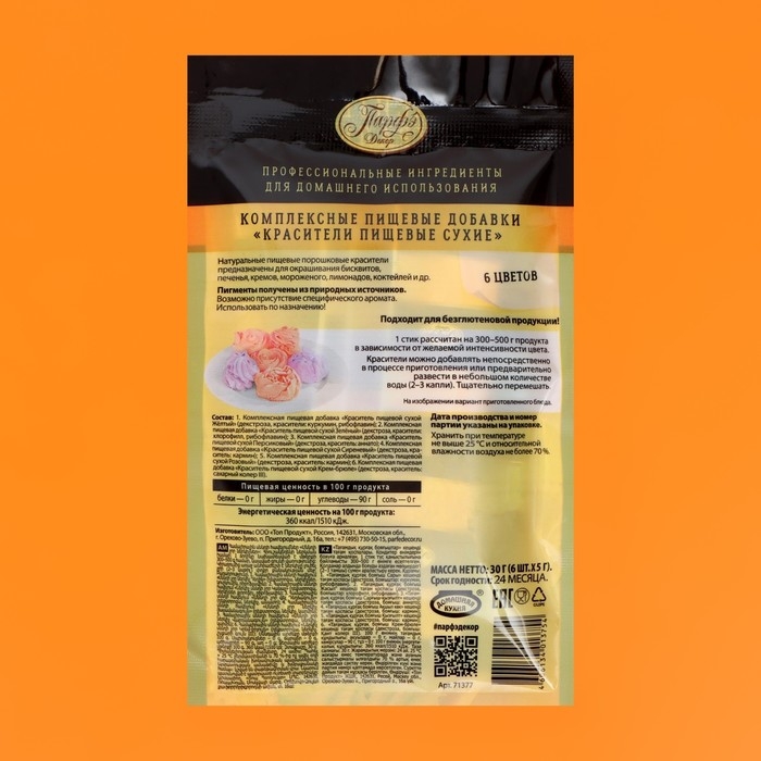 - Краситель пищевой сухой персиковый.