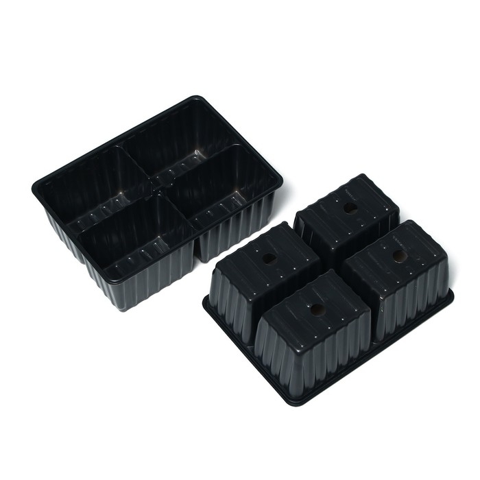Кассета для рассады, на 4 ячейки, по 180 мл, пластиковая, чёрная, 18 × 13 × 6 см, в наборе 10 кассет, Greengo