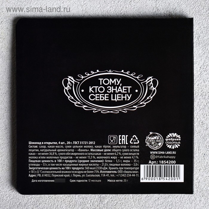 Шоколад молочный «Мужик», открытка, 5 г х 4 шт. (18+)
