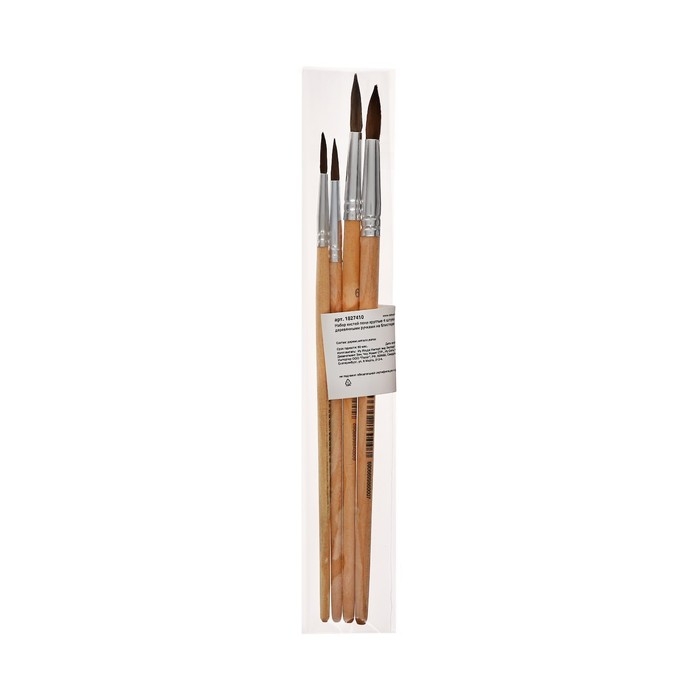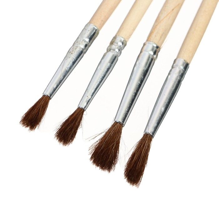 Набор кистей, "Пони", круглые, 4 штуки: № 1, 2, 3, 4, с деревянными ручками, на блистере