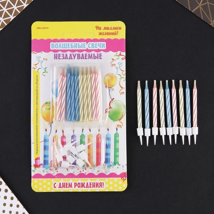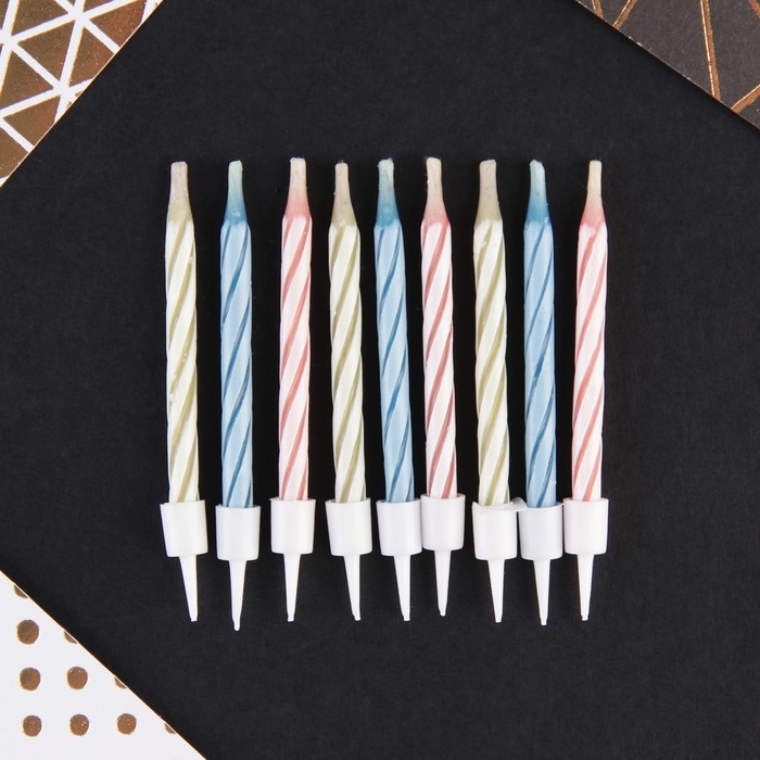 Свечи для торта «Спираль», незадуваемые, 10 шт., 10 подставок