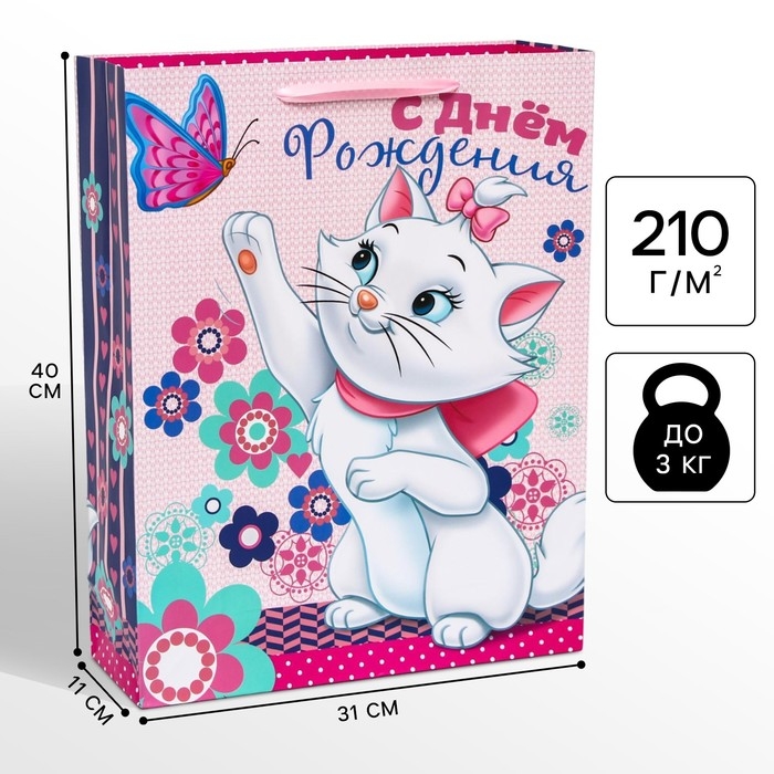 Пакет подарочный "С Днем рождения!" 31х40х11 см, упаковка, Коты Аристократы