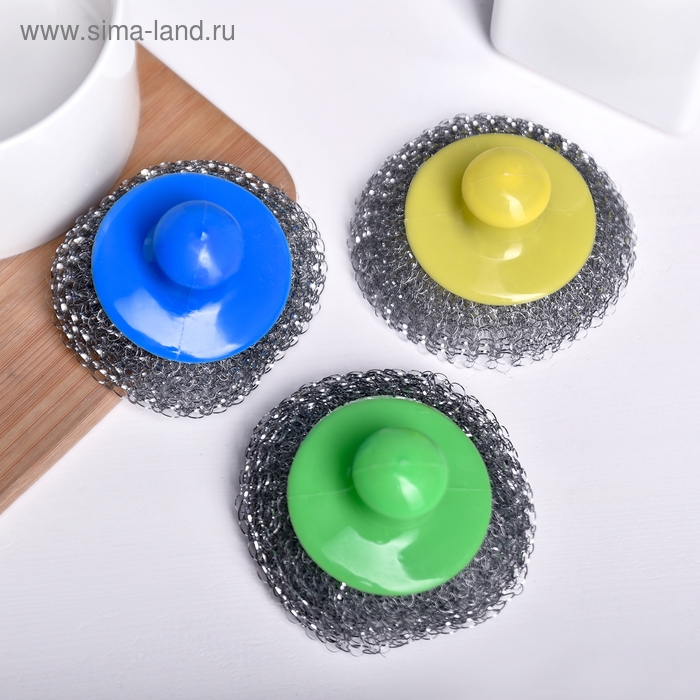 Губки для посуды Доляна, 3 шт, металлическая, 9×9×2 см