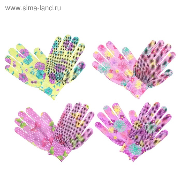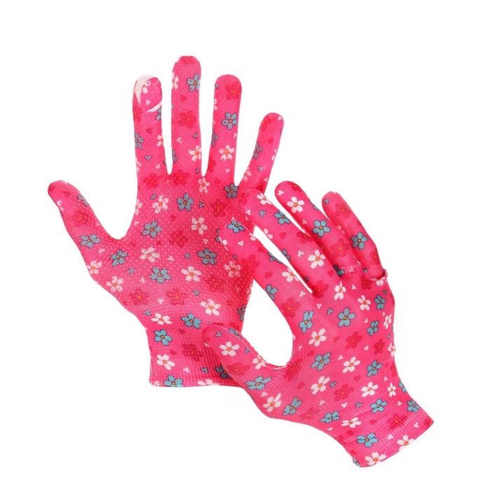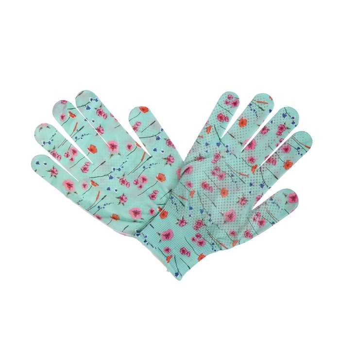 Перчатки нейлоновые, с ПВХ точками, размер 8, МИКС, «Цветы», Greengo