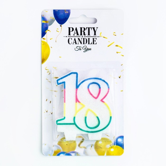 Свеча для торта «Юбилейный ГИГАНТ», цифра "18", ободок цветной, 7,5 см