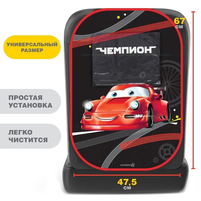 Яркий чехол ТМ «Крошка Я» сохранит в чистоте переднее сиденье автомобиля. Используйте это специальное приспособление, чтобы малыш не запачкал ботиночками спинку кресла.