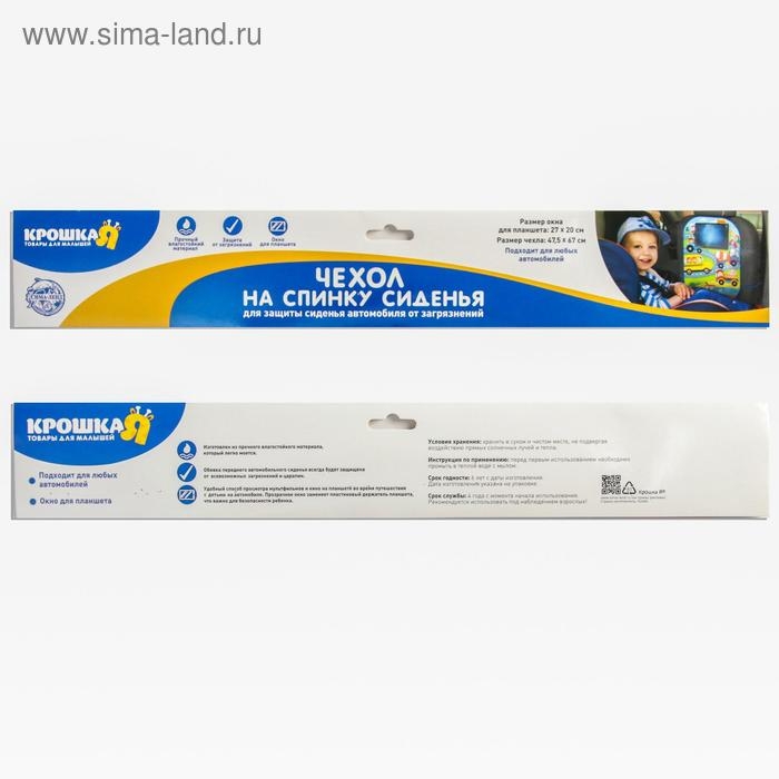 Яркий чехол ТМ «Крошка Я» сохранит в чистоте переднее сиденье автомобиля. Используйте это специальное приспособление, чтобы малыш не запачкал ботиночками спинку кресла.