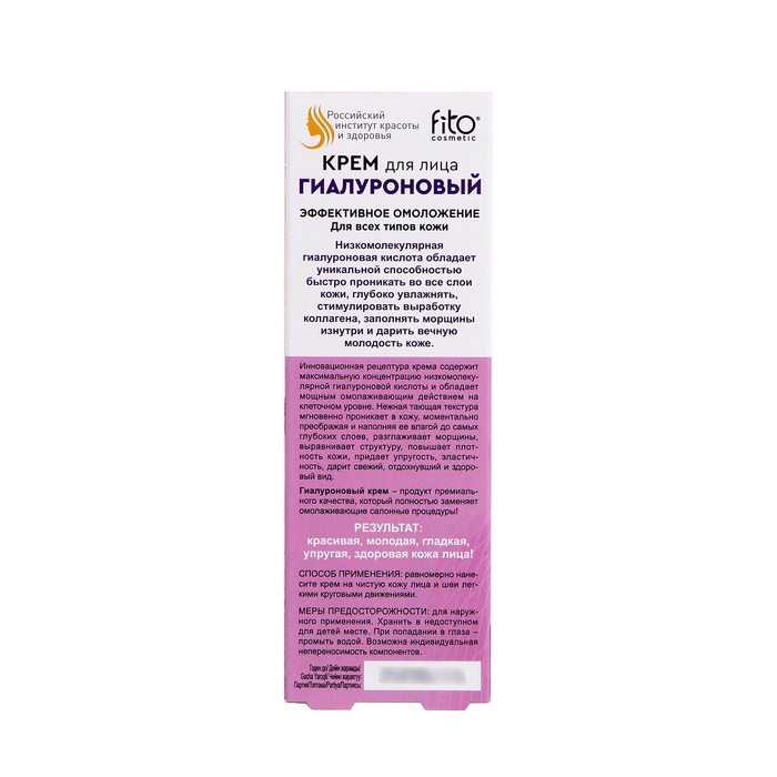 Крем для лица гиалуроновый "Эффективное омоложение" – это идеальное средство для тех, кто хочет добиться глубокого увлажнения и заметного омоложения кожи, обеспечивая ей комплексный уход и защиту.