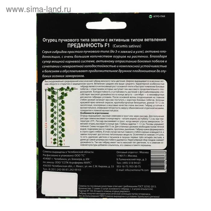 Семена Огурец "Преданность" F1 пучкового типа завязи, партенокарпический, 7 шт
