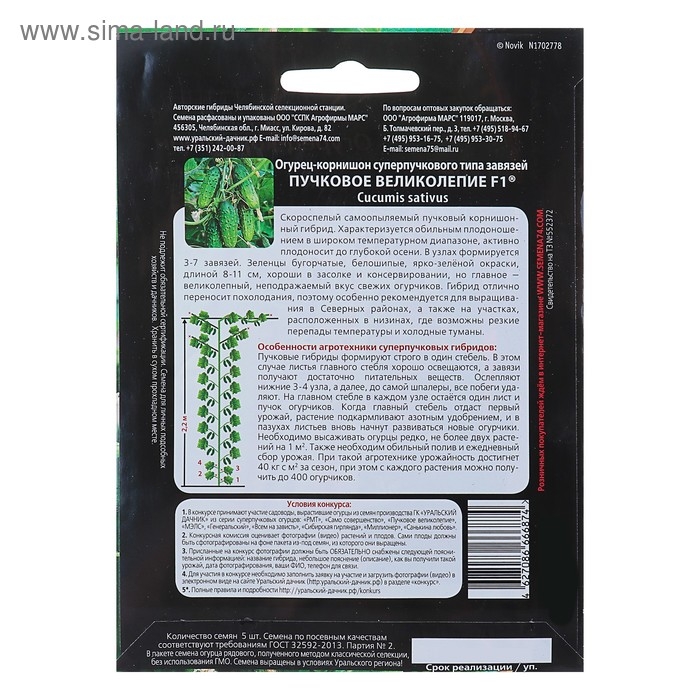 Семена огурца "Великолепная пятерка", F1,набор 5 шт