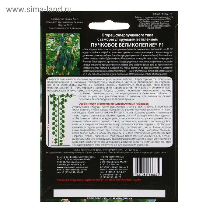 Семена Огурец "Сибирская Гирлянда" F1 скороспелый, партенокарпический, 5 шт