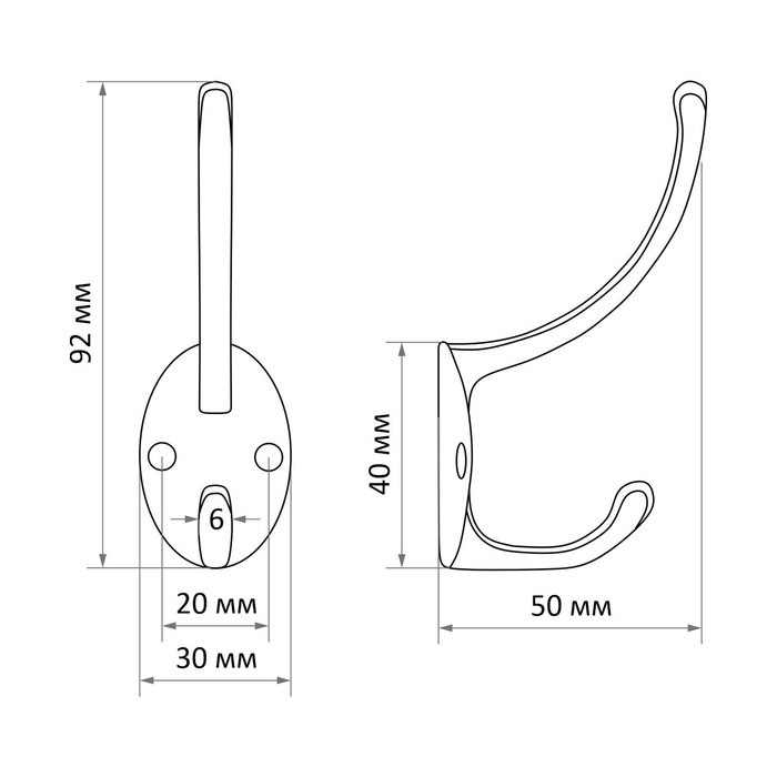 Металлический двухрожковый крючок поможет вам организовать порядок в доме. Данная фурнитура предназначена для хранения одежды, аксессуаров и других вещей.